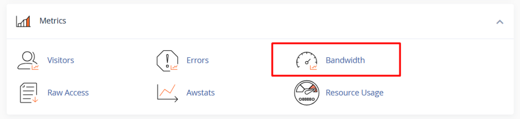 - Click on the “Bandwidth” or “Bandwidth Usage” icon or link.