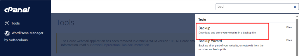 To take a full account backup in cPanel, follow these steps: