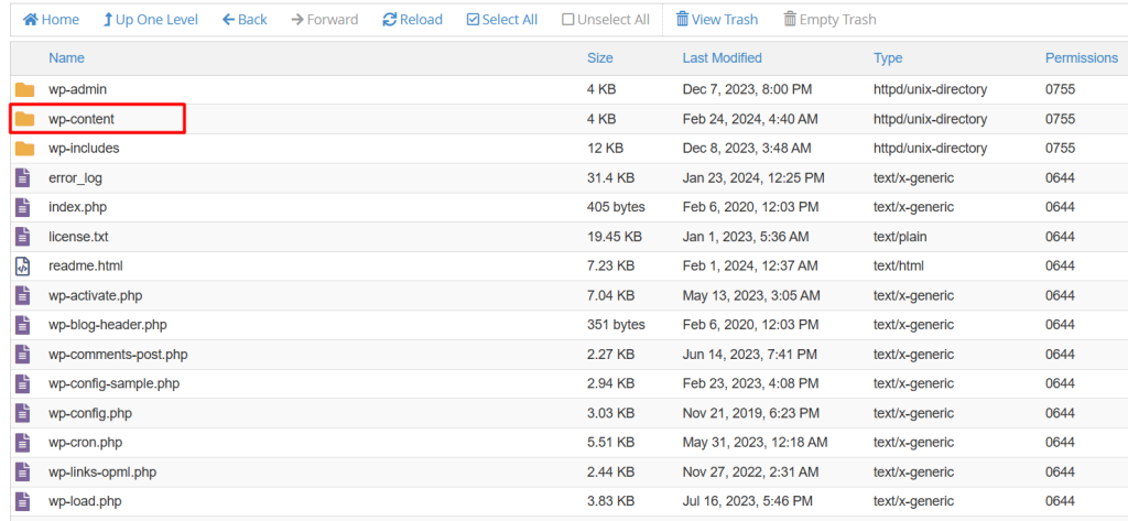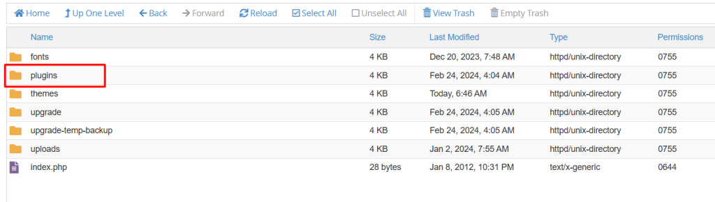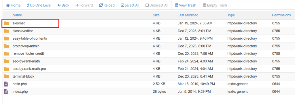 Locate the Plugin to Disable: In the “plugins” folder, you’ll see a list of folders, each representing a plugin installed on your WordPress site. Find the folder corresponding to the plugin you want to disable.
