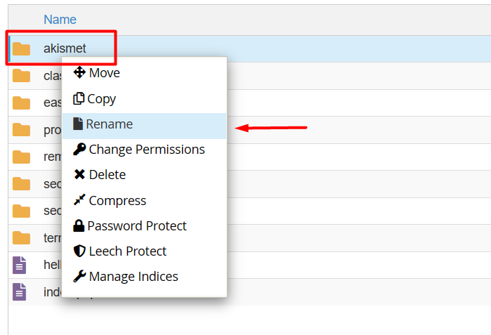 Rename the Plugin Folder: To disable the plugin, you can simply rename its folder. Right-click on the folder representing the plugin, then select “Rename” from the menu. You can add “_disabled” or any other text to the end of the folder name to deactivate the plugin.