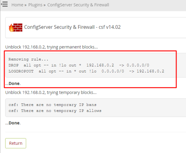 In WHM (Web Host Manager), unblocking an IP address typically involves accessing the “ConfigServer Security & Firewall” (CSF) configuration interface.
