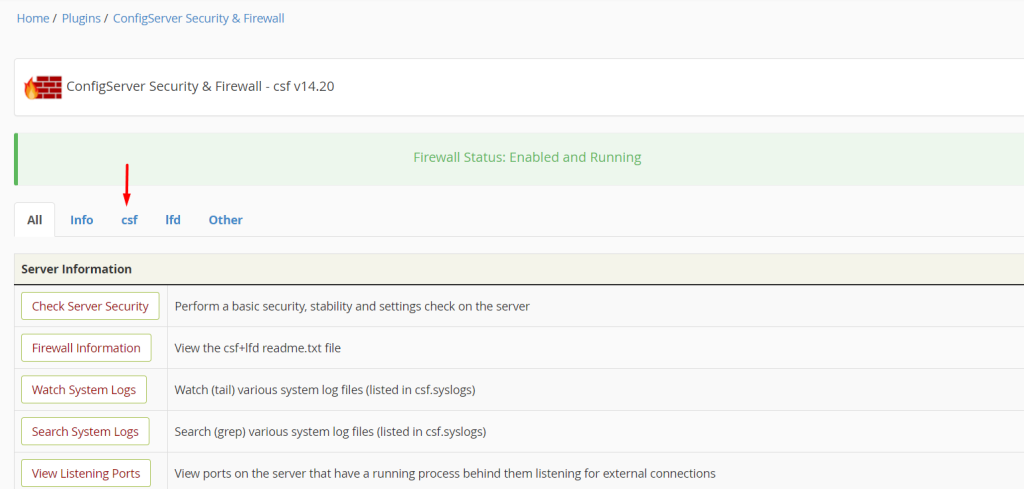 It’s often recommended to restart the CSF firewall to apply changes. Look for an option to restart CSF within the CSF interface.